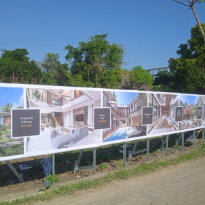 - Kedua, sebagai media promosi visual untuk memperkenalkan nama perumahan, konsep hunian, hingga promo penjualan. Ketiga, banner pagar proyek dapat meningkatkan keamanan karena membantu menandai area konstruksi agar lebih mudah dikenali.